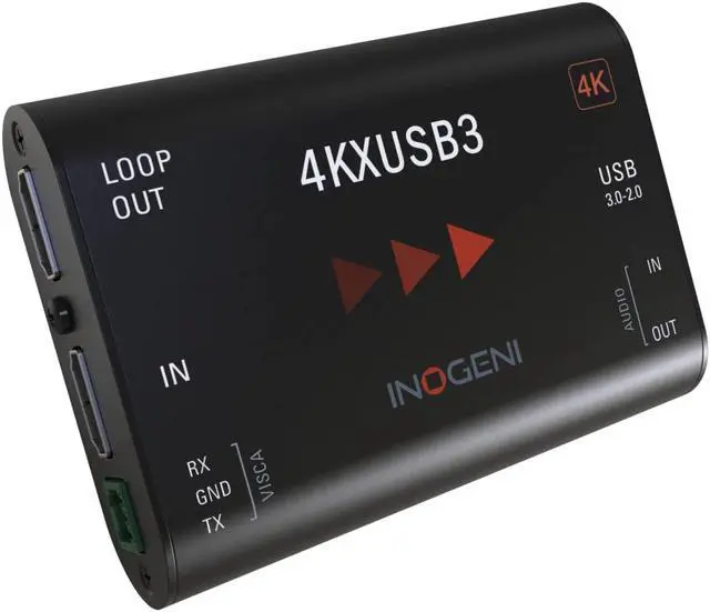 4KXUSB3 by INOGENI, Video Converter 4K HDMI to USB with HDMI Loop, Plug and Go, Up to 60fps, Professional Device with VISCA Control