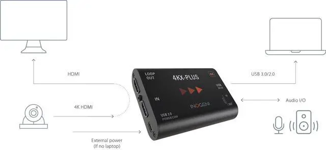 MAIN FEATURE: Converts Ultra HD to USB 3.0 with an HDMI loop and external power for BYOM applications. It connects your HDMI cameras, video sources or CODE