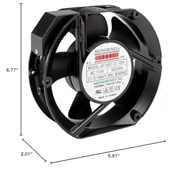 MECHATRONICS UF15PC12-BTHR .25 AMP, 115 VAC, 172 X 150 X 51 MM, 226 CFM, 31 W, 3400 RPM, Aluminum, Fan, Rounded Rectangular, Tube AXIAL