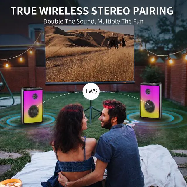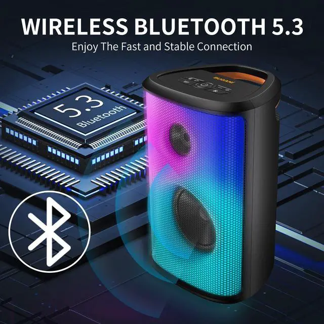 80W Loud Sound & Thunderous BassBUGANI Bluetooth speaker is crafted through a fusion of cutting-edge technology and four decades of audio mastery, letting your ears enjoy high-definition stereo sound anytime, anywhere. Built-in 2" tweeter and 5.25" subwoofer, creating a mesmerizing blend of crisp trebles and resonant bass, immersing you in a concert-like atmosphere. Experience the extraordinary BUGANI loud Bluetooth speakerHear it to believe it. ^^ 6 Full Panel Party Lighting EffectsTransform your space into a mesmerizing audiovisual experience with the BUGANI Bluetooth speaker's innovative lighting effects. BUGANI bluetooth speaker with lights immerse yourself in a visual symphony as six full-panel lighting effects dance harmoniously to the rhythm of your music, creating an ambiance that elevates your listening sessions.