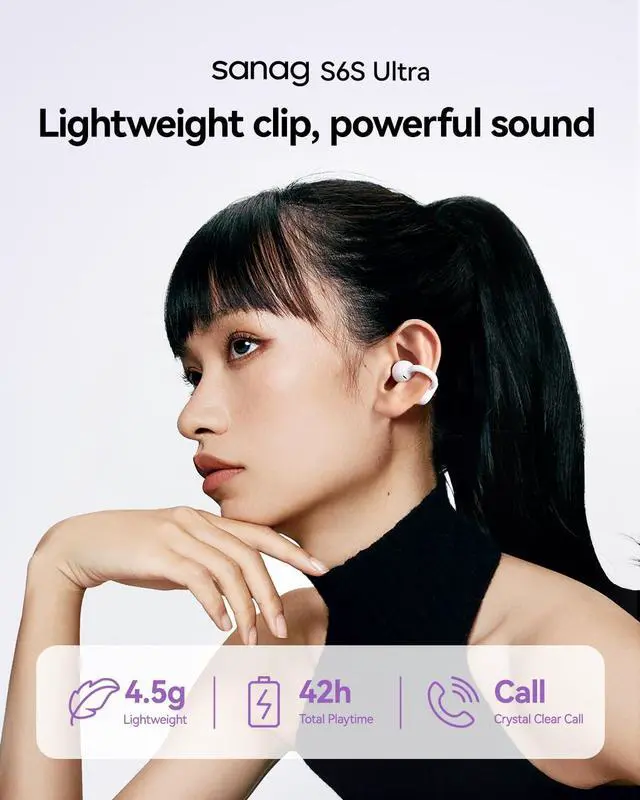 S6S Ultra Open-Ear Headphones, Clip-On Earbuds