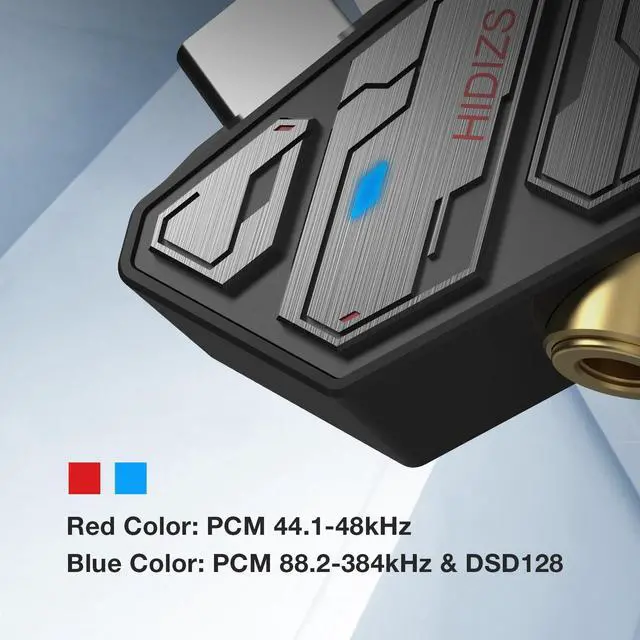 Standard Certification: The SD2 portable DAC amp has passed Hi-Res audio certification, ensuring high-quality audio performance. Equipped with a Hidizs-style sampling rate indicator light, it intuitively displays the sampling rate of the current audio file being played. Red indicates PCM 44.1 -48 kHz, while blue indicates 88.2 -384 kHz and DSD, ensuring you always know the quality of your audio experience