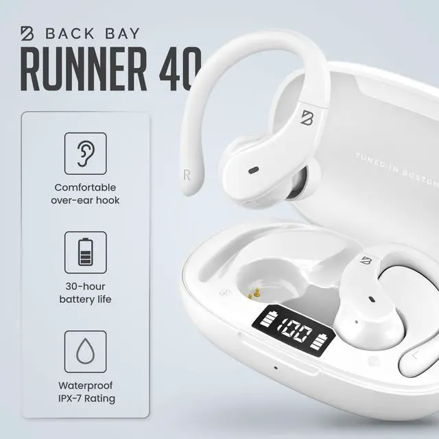 Back Bay Audio - Runner Wireless Earbuds for Running, Workout Wrap Around Earbuds Bluetooth Headphones for Sports, Around The Ear Wireless Bluetooth Running Headphones, Hook Over Earphones Earhooks