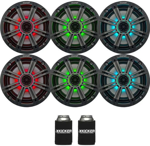 This package contains three pairs of Kicker 6.5 Inch KM OEM Marine Speakers with charcoal grilles These speakers do not come with a retail box or other accessories. They will arrive in plain brown packaging. Spectacular Highs Spectacular highs and midrange sounds coupled with the simplest of speaker installations, provide full-range audio specifically for a marine environment. Multi-color LEDs These coaxials will brighten any boating experience with multi-color LED lights that can be changed to fit your mood or craft. KMLC Remote The KMLC remote allows you to customize your LED lighting to get the perfect look for your boat (sold separately).