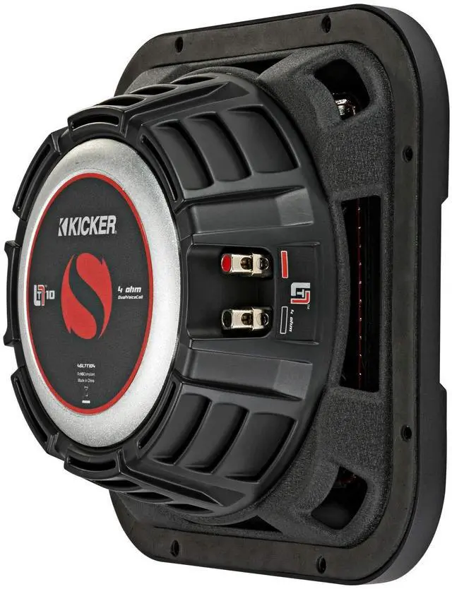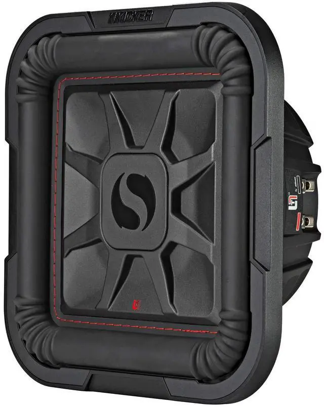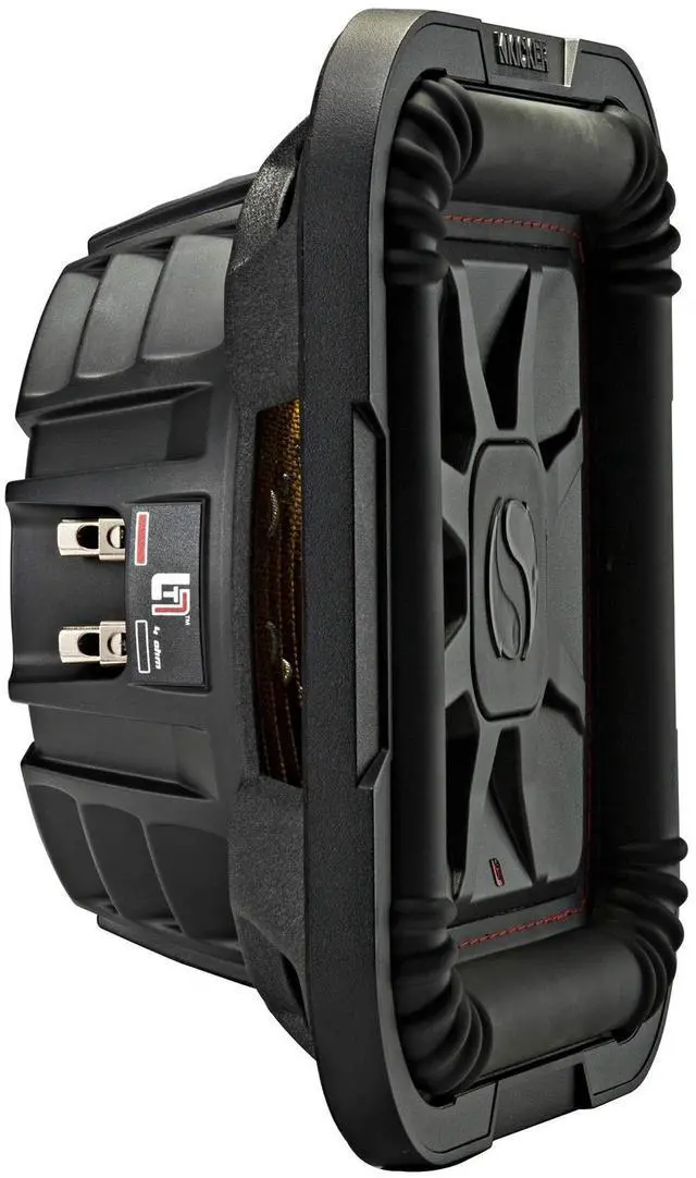 The L7T 10-inch Dual 4-Ohm Subwoofer works best with a sealed or ported enclosure and 500 watts of recommended power. ^^ Legendary KICKER Solo-Baric square subs in the slimmest space ever! ^^ The square cousin to the CompRT subwoofer, the L7T fits under your seat or in a corner of your trunk with ease. ^^ KICKERs L7T Square Sub technology gives you up to 20% more cone area than a conventional round sub. ^^ A next-level top-plate design, unique heat management system and our signature cone stitching all help to give you deep bass and outstanding reliability in a single, mind-blowing design that gives you max output!