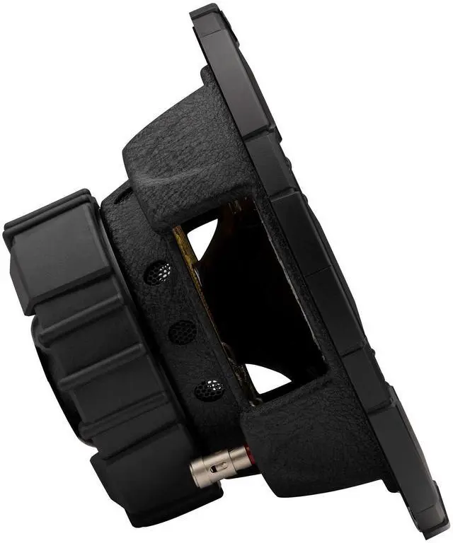 A ribbed, UV-treated surround with white double stitching binds the suspension to a thick polypropylene cone for excellent reliability. ^^ High-quality stamped steel is used for the basket for outstanding stability under extreme stress. ^^ The bumped back plate allows the high-temp voice coil to move even more, so you get deeper bass without distortion. ^^ Forced Air Cooling for excellent heat management. As the woofer's cone moves downward, hot air around the voice coil is forced out of the woofer. As the woofer's cone moves upward, cool outside air is drawn into the woofer cooling the voice coil.