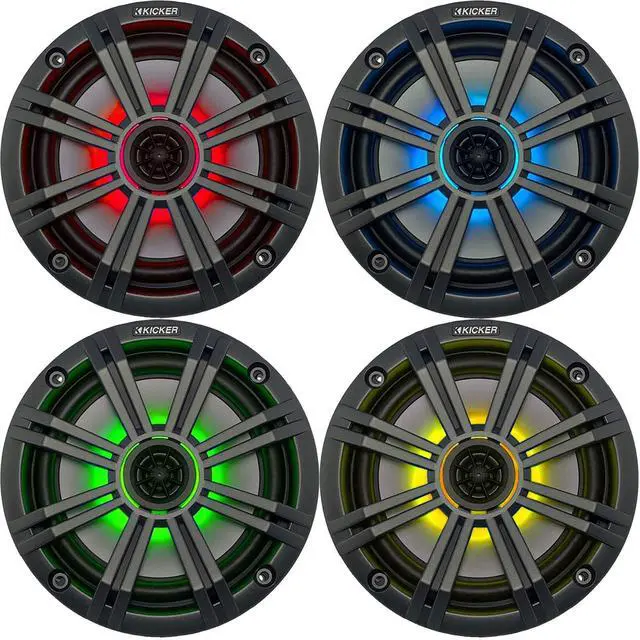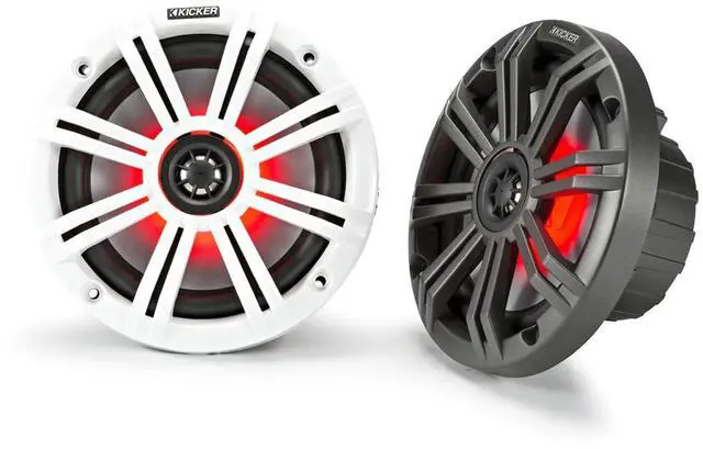 Marine LED Speakers: 195W Peak Power, 65 Watt RMS Power Multicolor LED Lighting Capablities Moisture-draining System Polypropylene midwoofer Rubber surround Sealed Motor Structure 1/2 titanium dome tweeter 4 ohms impedance