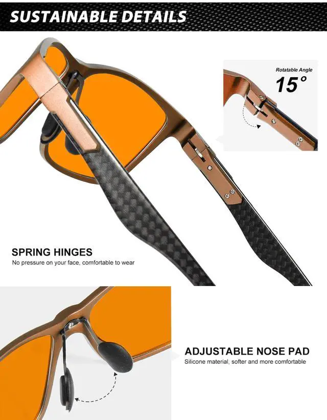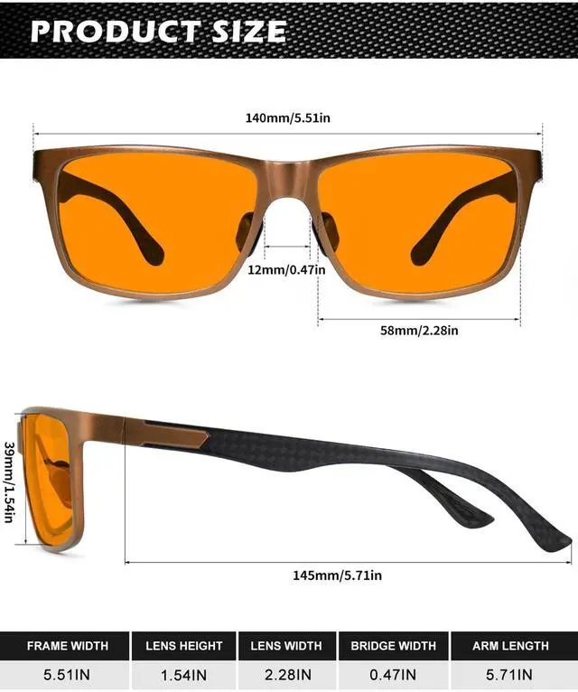 • Premium Temple Material: With superior Al-Mg and carbon fiber composite temple, this type of blue light blocking glasses for men is ultra-light than pure metal frame, also more sturdy. No more worries about broken temples. As more suitable for anyone who often work or play games by the computer, do not miss this pair of practical and classic blue blocker glasses.