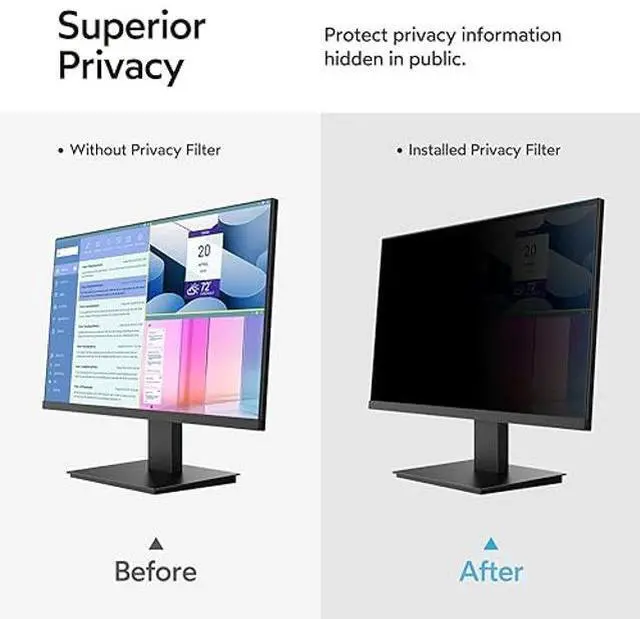 Superior Privacy: Our advanced multi-layered film filter maintains a crystal clear vision on the front and blacks out 21.5 inch privacy screen for monitor when viewing from the side,the greater the angle the darker the screen. The computer privacy filter limits viewing angle to +-28deg, keeping your important information confidential and protects sensitive information, making it ideal for use in high-traffic areas