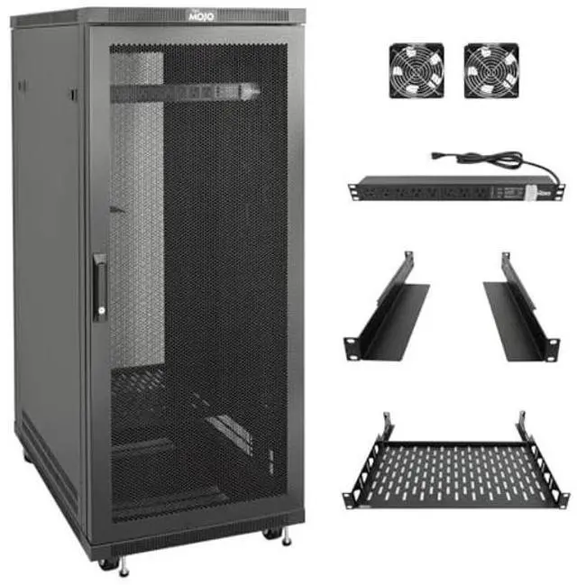 Tecmojo Network Rack Cabinet, 27U Server Rack, 23.6 Inch Depth, Hold Up to 1600Lbs, Lockable Cabinet with Casters and Complete Accessories, Mesh Door, for Home, Office, Small Business (27U 23.6" w* 23.6" d)
