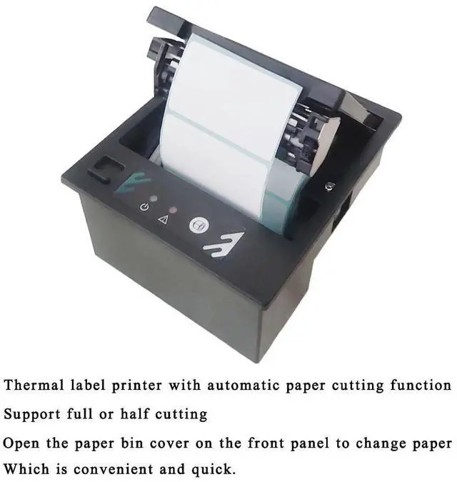 This thermal label printer can print clearly, and the paper bin can accommodate the label paper roll with a diameter of 50MM, which can be easily embedded in the detection instrument to realize the function of data printing. The printer can be connected to platforms such as Arduino, MCU, Android, Linux and Windows, and Android provides a secondary development kit. You can easily print text, pictures, barcodes, QR codes, etc.