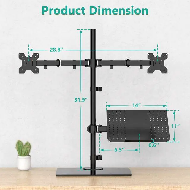 Compatibility: Fits Laptop/Notebook up to 17", monitor up to 27" and supports weight up to 22lbs per arm. Mount plates detachable and height adjustable adapt to mounting holes 75x75mm and 100x100mm