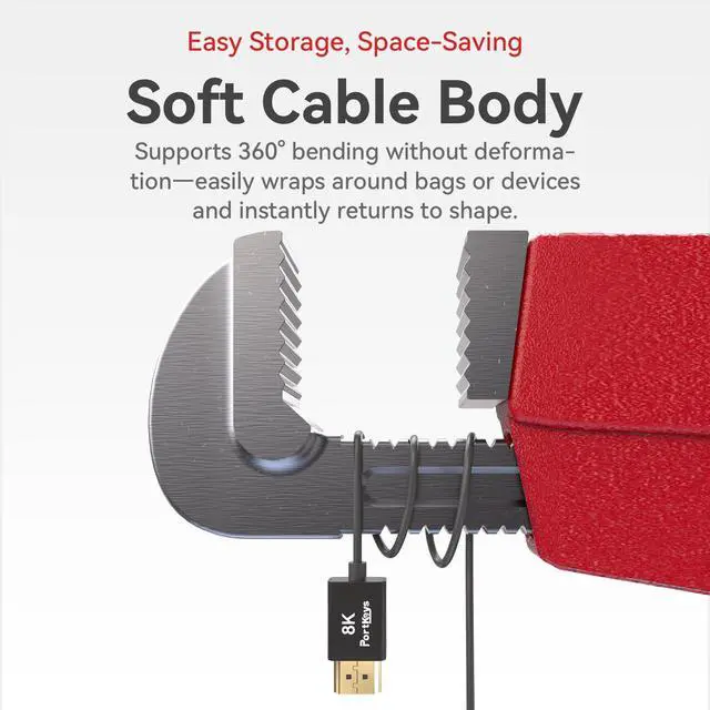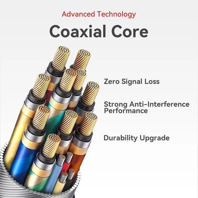 Full 19-PIN Mapping with Grounded Isolation Portkeys HDMI cable features complete 19-PIN mapping and grounded isolation. Supports full data transmission and control signal transfer while meeting certified industry standards. ^^ Precision-Engineered Coaxial Core Built with a high-purity oxygen-free copper core and golden-ratio multi-layer shielding. This 10-core coaxial structure ensures zero signal loss, superior interference protection, and enhanced durability.