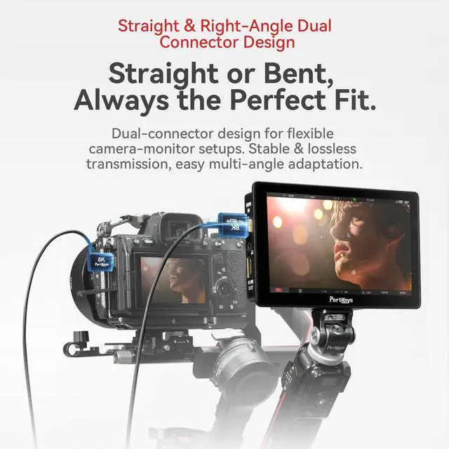 ^^ Dual Connector Design: Straight & Right-Angle Includes both straight and right-angle HDMI connectorsperfect for tight setups between cameras and monitors. Offers stable, lossless transmission and flexible cable routing. ^^ 8K High-Speed Transmission Delivers ultra-stable signal transfer for 8K@60Hz and 4K@120Hz content. Supports dynamic HDR for vivid color accuracy and smooth visual performance. ^^ Plug & Play Across Multiple Devices Compatible with camera monitors, PCs, TVs, projectors, and gaming consoles. Easily switch between work, entertainment, and content creationall with one cable.