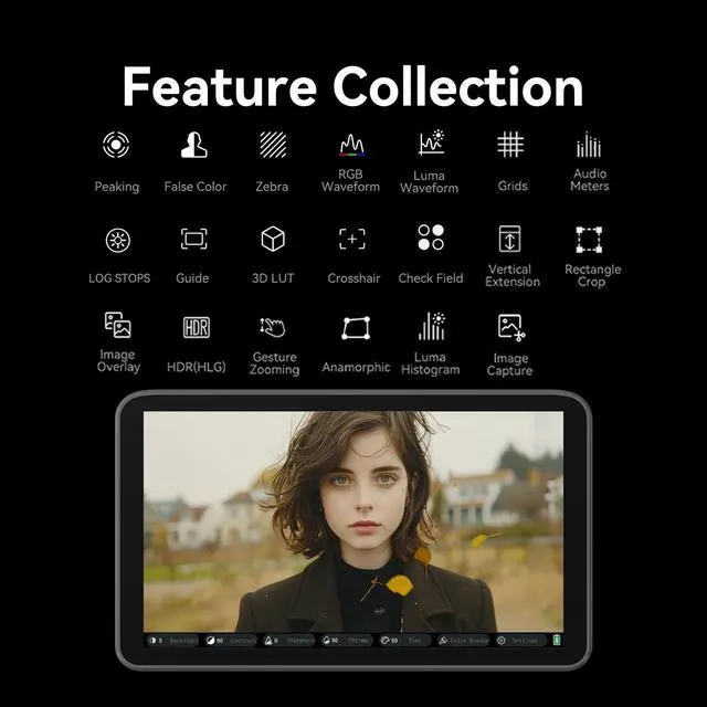 Supports loading up to 20 custom 3D LUTs via USB. Crucially, it features HDMI 3D LUT Output, allowing you to send the color-graded signal to a wireless transmitter or director's monitor for consistent team monitoring ^^ Freeze Frame with Overlay ComparisonCapture and store reference frames on USB drive, then overlay them semi-transparently with live video for precise shot matching. Perfect for maintaining continuity between takes, matching actor positions, and recreating complex compositions frame-by-frame ^^ Anamorphic De-SqueezePreset 10