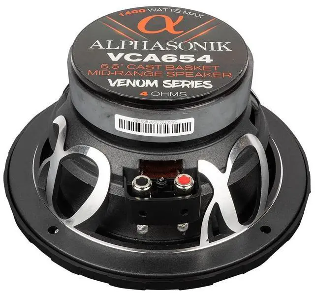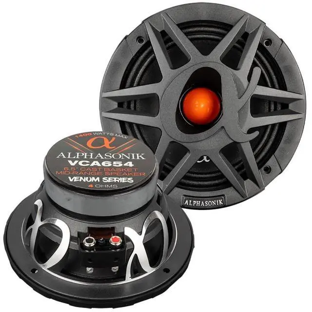 Alphasonik 1 Pair of VCA654 VENUM PRO Series 6.5" 1400 Watts Max 350 Watts RMS Mid-Range Car Audio Speaker 4-Ohm Proprietary Grille, Cast Basket, Cloth Surround, Non Pressed Paper Cone, Ferrite Magnet