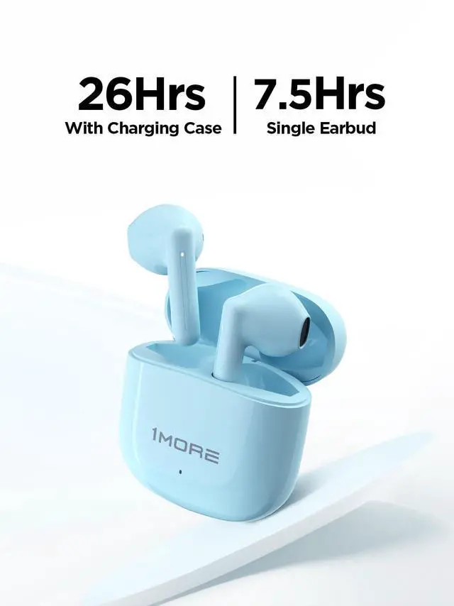 1MORE Q10 Wireless Ear Buds, Bluetooth 5.3 Half in-Ear Wireless Earbuds with Charging Case, Deep Bass Stereo Headphones, Dual Mics, 26H Playtime, one Step-Pairing, IPX4 Waterproof Earphones, Blue