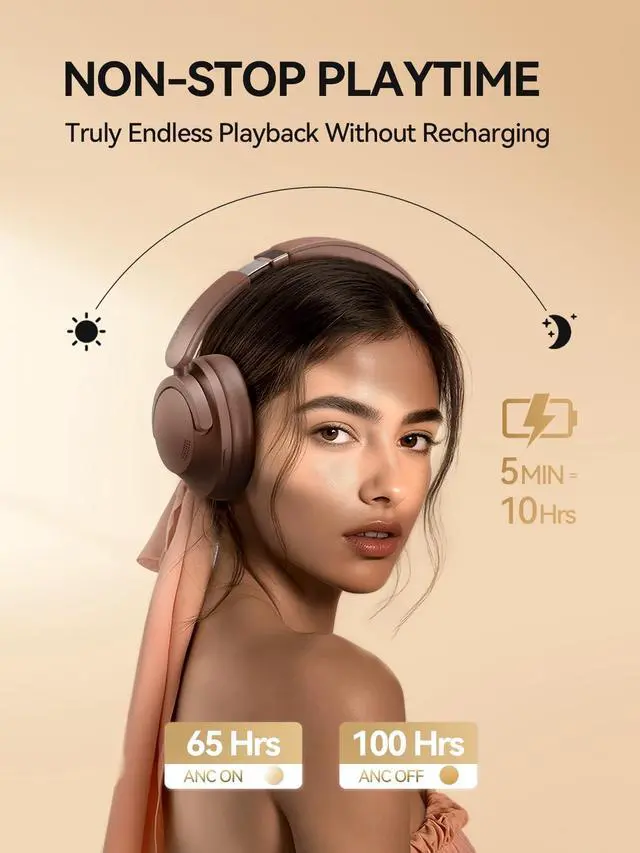 Quick Charge: Keep the music going with up to 100 hours of playtime in standard mode and 65 hours with ANC on. A quick 5-minute charge gives you an extra 10 hours of playtime, ensuring your over ear bluetooth headphones are always ready when you are ^^ All-Day