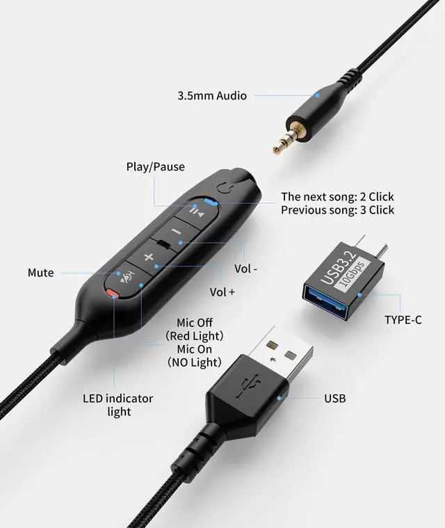 One-click mute, line controlYou can operate the microphone mute, track up and down, and other basic functions of the headphones with one hand. It comes with an indicator light, allowing you to check the status of your headphones even in the dark.