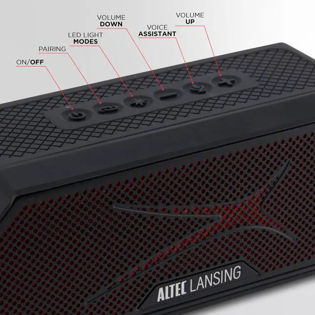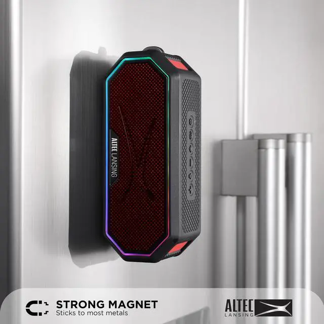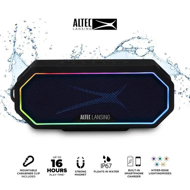 Altec Lansing Magnetic Bluetooth Speaker HYDRAJOLT 2.0, Waterproof IP67, 12W Output Power, 16H Battery, Multicolor LED, 100ft Wireless Range, Voice Assistant, USB-C Quick Charge