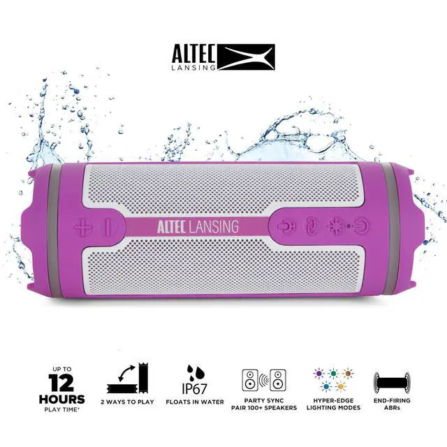 Altec Lansing HydraMOTION 2.0 Wireless Bluetooth Speaker, 16H Battery, RGB Lights, USB-C Quick Charge, IP67 Rated Waterproof Bluetooth Speaker, Mountable, Voice Assistant