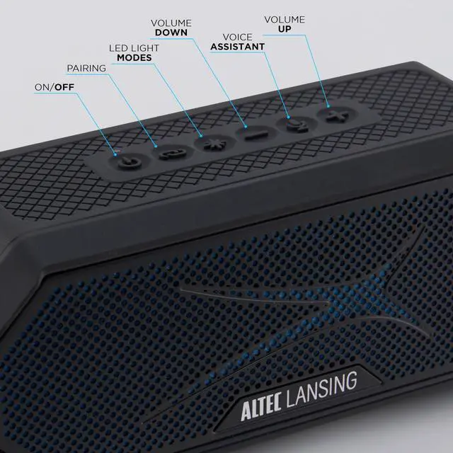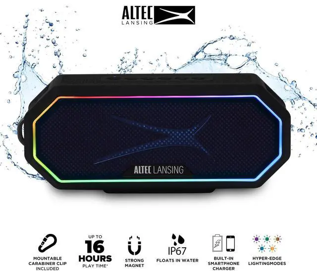 Altec Lansing Magnetic Bluetooth Speaker HYDRAJOLT 2.0, Waterproof IP67, 12W Output Power, 16H Battery, Multicolor LED, 100ft Wireless Range, Voice Assistant, USB-C Quick Charge