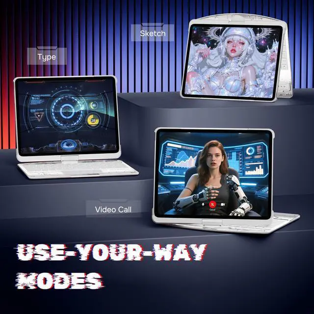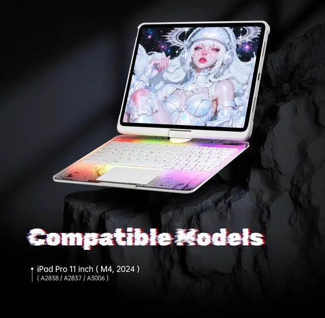 Elevate your iPad experience with our 360 Rotating Keyboard Case. The swivel base offers multiple viewing angles for easy typing, drawing, or watching videos. A transparent hard shell shows off your iPads design while reinforced edges provide solid protection. The acrylic panel reveals the tech-inspired internal circuitry, adding a futuristic touch. Ideal for working, streaming, or browsing, this case transforms your iPad into a stylish and functional workstation, wherever you go.