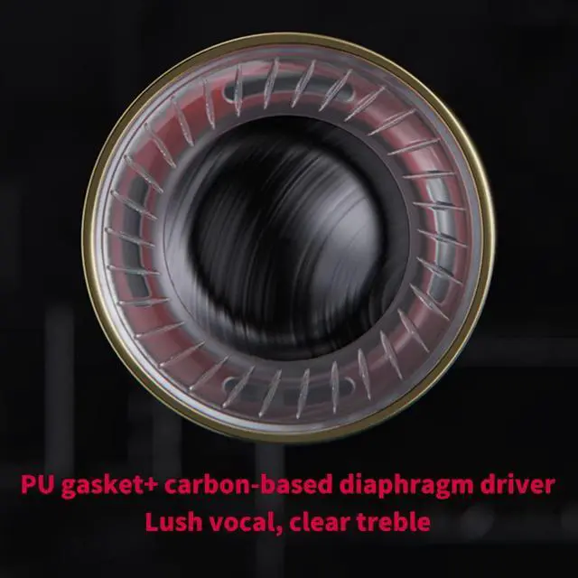Design: Featuring a specially-developed large 14.2mm dynamic driver, PU gasket + carbon-based diaphragm driver, extended bass acoustic resistance pipes.