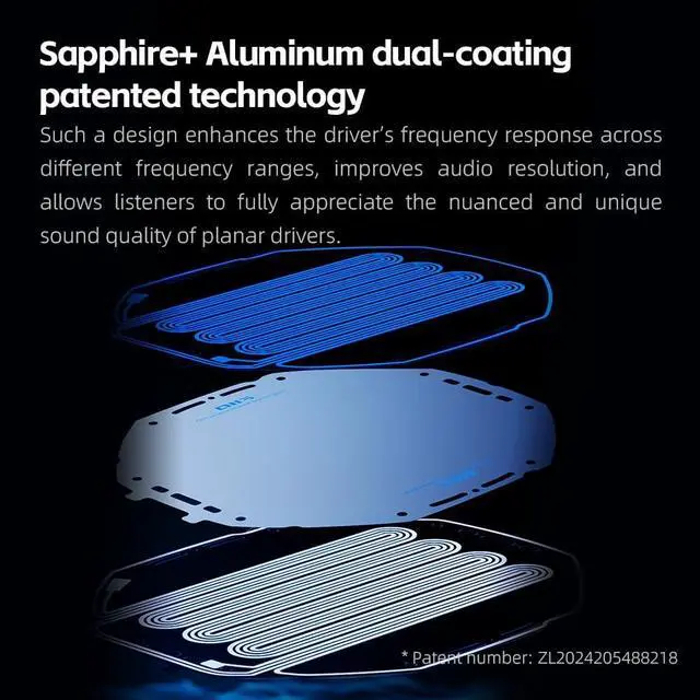 Aluminum Dual-Coating Patent Technology: The diaphragm uses a dual-coating of sapphire and aluminium to enhance frequency response across different bands, improving audio resolution and allowing for a more detailed sound from the flat unit. The sapphire coating, known for its high hardness, effectively boosts high-frequency resolution, while the aluminium coating, lightweight in nature, improves the voice coil's conductivity. ^^ Uniform