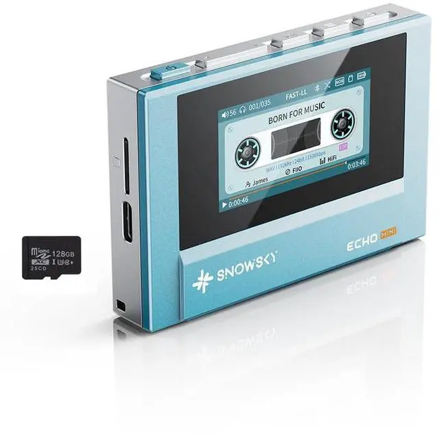 136G MP3 Player with Bluetooth, SnowSky/FiiO Echo MINI Music Player 15Hours Playback, Independent Volume Control with 3.5mm/4.4mm Headphones Outputs, up to 256GB(Sky Blue with SD Card)