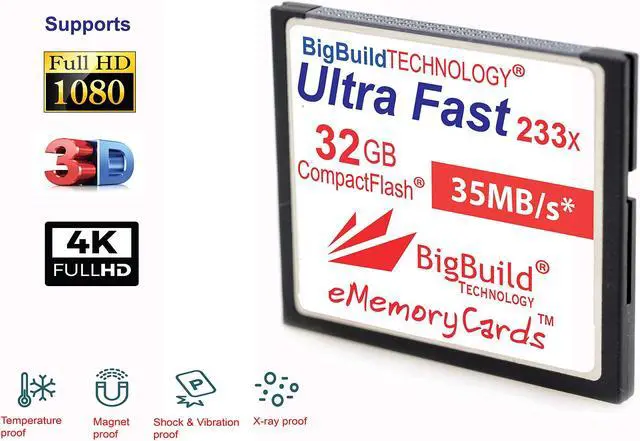 Our 32GB CompactFlash memory card is one of the most reliable CF memory cards available in the market designed for the professional photographer or the hobbyist. It delivers maximum speed for performance, reliability.
