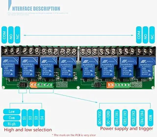 High-level trigger: 12-24V relay ON; 0- 8.5V relay OFF;