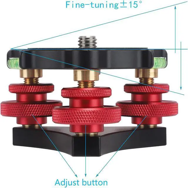 • [(More Flexibility)] The Leveler leveling base with 3 adjustment dials enable the operator to make fine, finger tip adjustments up to +/- 5 degrees to ensure the camera is perfectly level,Build-in bubble levels 3 pcs.