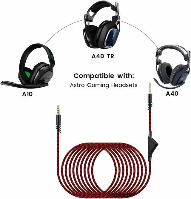 weishan A40 Mic and Audio Cable, Replacement for Astro A40 TR Gaming Headsets, with Inline Volume Control, Black+Red