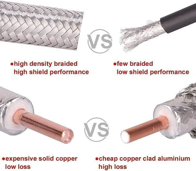 Outer conductor: Aluminum foil and tinned copper braidDielectric: Foamed