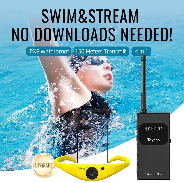 TO 150M): Engineered with advanced wireless technology, the T6 transmitter offers an industry-leading range of up to 150 meters (490ft) on land and a stable signal up to 1 meter underwater. Its a powerful, more affordable alternative to the Zygo headset, ensuring uninterrupted music or coaching in any standard Olympic-sized pool. ^^ 4-IN-1