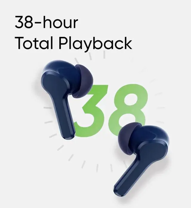 38-Hour Total Playback: Each bud offers 40mAh battery capacity, and the chargingcase offers 460mAh. That means you can keep the musiccoming for 7 hours without the case, and a whopping 38hours with the case. lf you use it for 5.5(Round it up) hoursa day, it'll last all week without needing a charge.