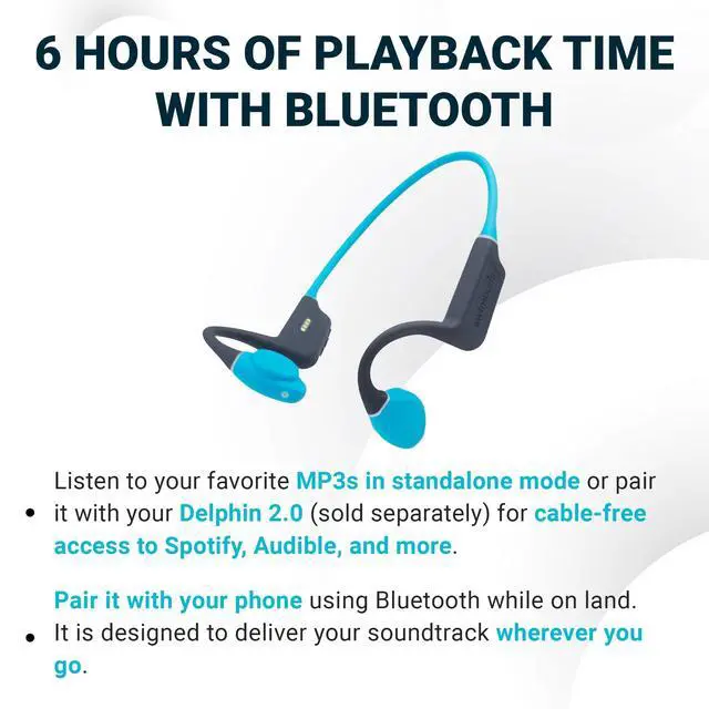 IMMERSIVE UNDERWATER SOUND Lose yourself in your swims with Swimbuds Bone Conduction 2. Enjoy crystal-clear audio, specifically tuned for underwater listening, making every lap enjoyable. ^^ VERSATILE LAND AND WATER USE Enjoy music both in and out of the water. With Bluetooth capabilities for land use and the ability to load MP3, AAC, FLAC files directly from your computer, your favorite tracks are always within reach. Please note, Bluetooth streaming does not work through water, you must load music files onto the device for the pool. ^^ SECURE AND COMFORTABLE FIT Adjustable design fits any head shape, with or without a swim cap, ensuring a secure and comfortable fit for everyone.