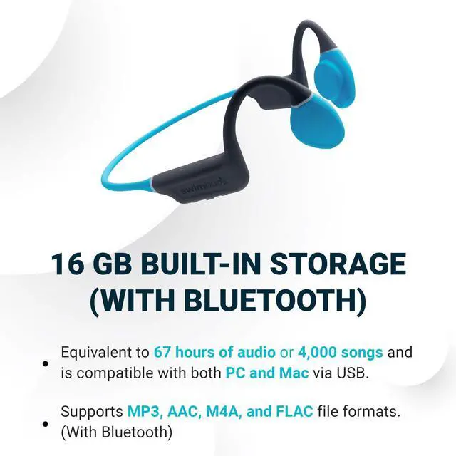^^ AMPLE STORAGE FOR ENDLESS AUDIO With 16GB of storage, you can load thousands of tracks or hours of audio, providing endless entertainment for your swimming workouts. ^^ LIGHTWEIGHT AND DURABLE Enjoy the lightweight design and the comfortable texture, making long swim sessions a pleasure.