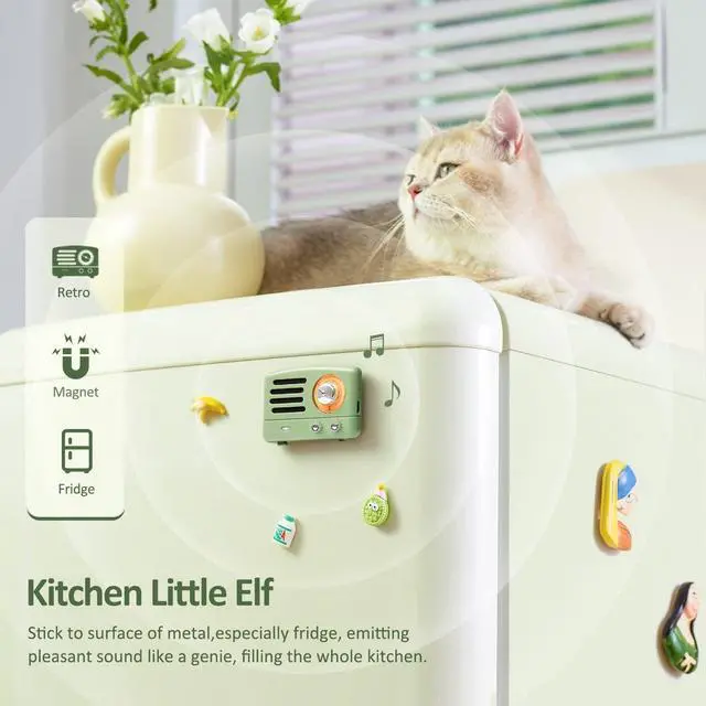 Unique Acoustic SystemMuzen magnetic bluetooth speaker by attached to different metal surfaces (such as coffee machines/dryers/file cabinets, etc. ), generating vibrations to bring different sound quality. And when this refrigerator bluetooth speaker pasted on the fridge, has a better effect, which is why we like to call this mini bluetooth speaker fridge sticker ^^ Retro Nostalgic DesignThis cute mini speaker has the style of old-fashioned radios, the beeping sound of Morse code, the luminous dial, the fridge stickers called "memory magnets" by collectors, these magnetic speaker are high-value aesthetic elements to decorate your life ^^ 5.3 Bluetooth ConnectionThis magnetic bluetooth speaker, its bluetooth pair (Bluetooth name and product match) is very easy and quick.