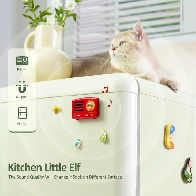 Notes: This magnetic sticker speaker only when stick on Metal Surface can get good sound. Unique Acoustic SystemMuzen magnetic bluetooth speaker by attached to different metal surfaces (such as coffee machines/dryers/file cabinets, etc. ), generating vibrations to bring different sound quality. And when this refrigerator bluetooth speaker pasted on the fridge, has a better effect, which is why we like to call this mini bluetooth speaker fridge sticker. ^^ Retro Nostalgic DesignThis cute mini speaker has the style of old-fashioned radios, the beeping sound of Morse code, the luminous dial, the fridge stickers called "memory magnets" by collectors, these magnetic speaker are high-value aesthetic elements to decorate your life. ^^ 5.3 Bluetooth ConnectionThis magnetic bluetooth speaker, its bluetooth pair (Bluetooth name and product match) is very easy and quick. this small bluetooth speaker compatible with most bluetooth devices, easily connect to tablet, computer or any other bluetooth enabled device in seconds. ^^ Long Battery Life This cute mini speaker 5+ hours of battery life, fast charging by USB Type-C. Let the music flow out with Muzen Magnetic Sticker speakers, dedicated to you who love life.