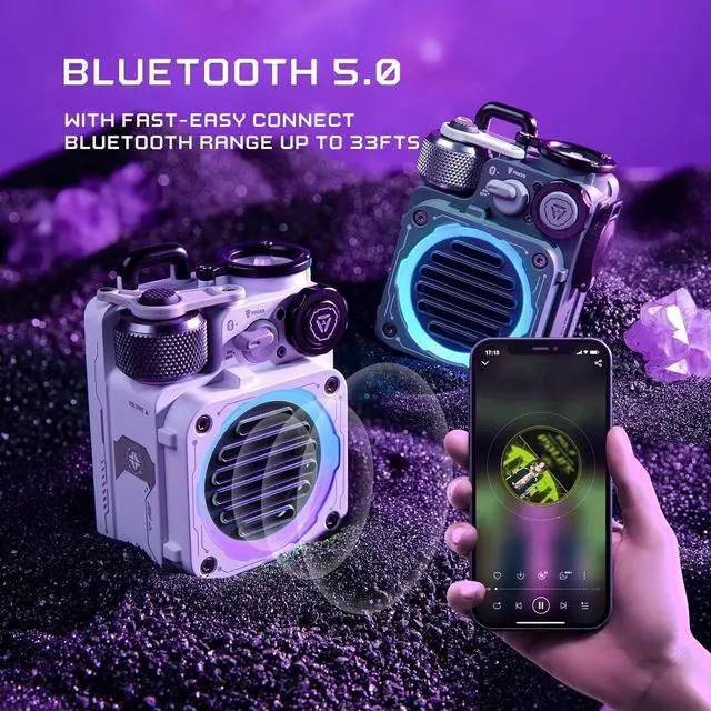 Portable Speaker: Ipx-5 waterproof and Dustproof with build in flashlight, rugged metal housing protects it on all of your outdoor adventures andvery easy to secure to any Backpack or Bag by lanyardneeds to be purchased separately ^^