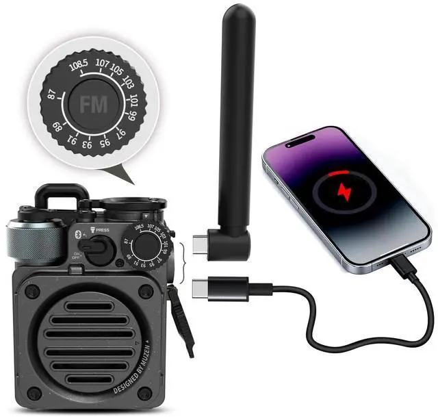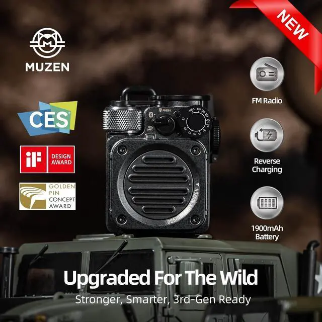 • Upgraded FM Radio & Bluetooth 5.3 The Muzen Upgraded Wild Mini 3.0 features FM Radio for easy access to your favorite stations and podcasts off the grid, plus the latest Bluetooth 5.3 for fast, stable, and smooth wireless connections. Ideal for outdoor adventures and entertainment.