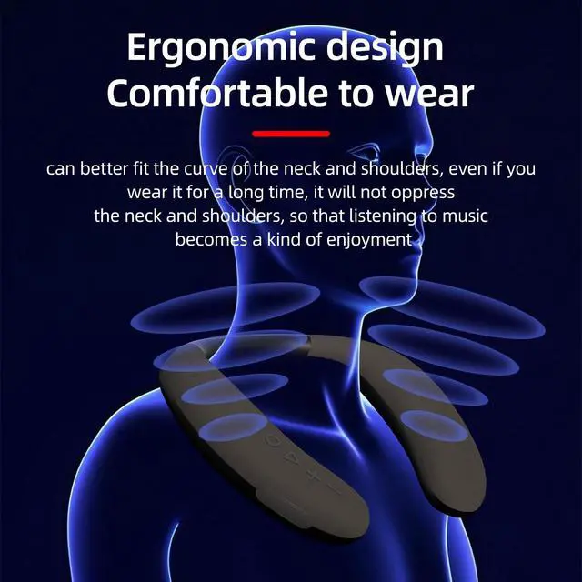 3D CINEMA STEREO SOUNDSThe latest Smalody audio technology in this neck speaker delivers an ultimate listening experience with clear sound, powerful volume, and rich bass. Surround yourself with deep bass with reactive vibration channeled right into your ears. ^^ SAFE & COMFORTABLEThe Smalody Bluetooth speaker is made of premium, skin-friendly materials, making it comfortable and lightweight. Weighing only 216g, you'll forget you're wearing something leaning lightly on your shoulder. Stay comfortable for all-day listening. ^^ 12 HOURS PLAYTIMEDon't worry about small things like charging the battery; the unique battery protection design gets the longest service life for the wireless speaker.
