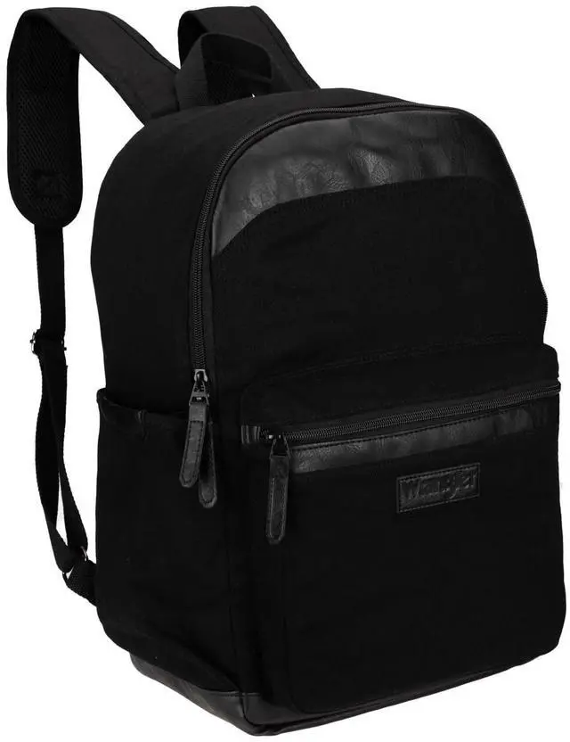 Wrangler Powell Backpack for Travel Classic Logo Water Resistant Casual Daypack for Travel with Padded Laptop Notebook Sleeve (Black)
