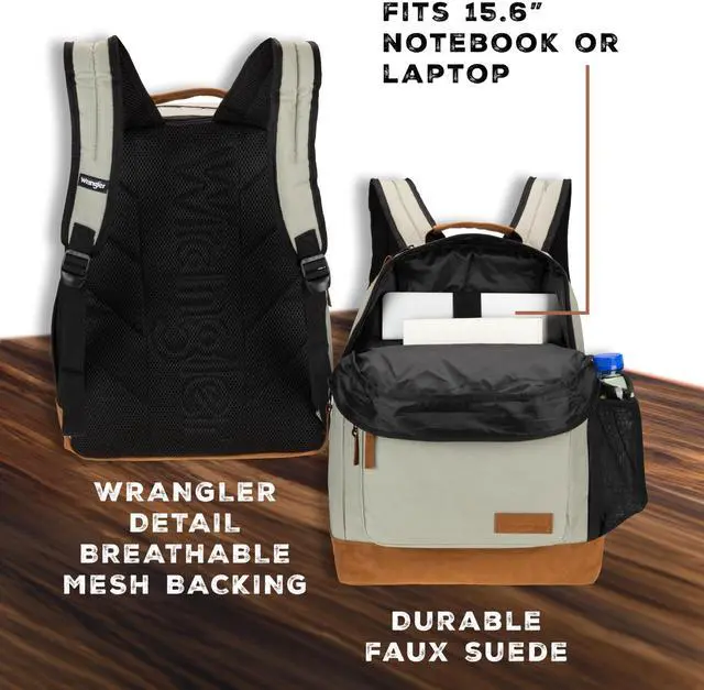 • Wrangler Yellowstone backpack is built for practical use while offering modern style. Equipped with carefully designed interior and exterior pockets, this convenient and comfortable pack keeps your laptop and supplies secure