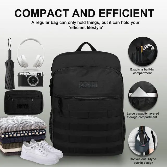Spacious & organized- this backpack provides ample room for all your essentials, including a laptop (up to 15.6 ), books, gym gear, and more. Multiple compartments keep your items secure and easily accessible. ^^ Durable & comfortable -Water-resistant polyester fabric + reinforced stitching. Padded back & shoulder straps reduce strain, making it ideal for long trips or daily commutes. ^^ Multi-functional for every use- Great for business trips, college students, outdoor adventures, gym, and daily work. Unisex design suits men & women. ^^ Versatile & Stylish -The sleek, rugged design transitions seamlessly from work to weekend adventures.