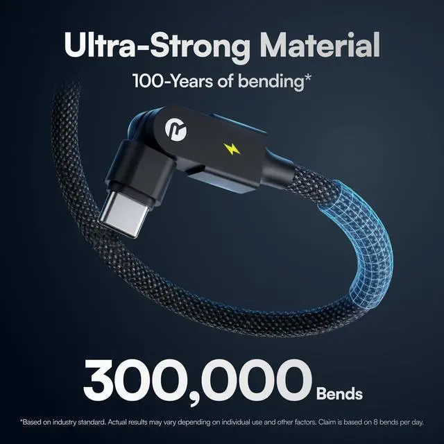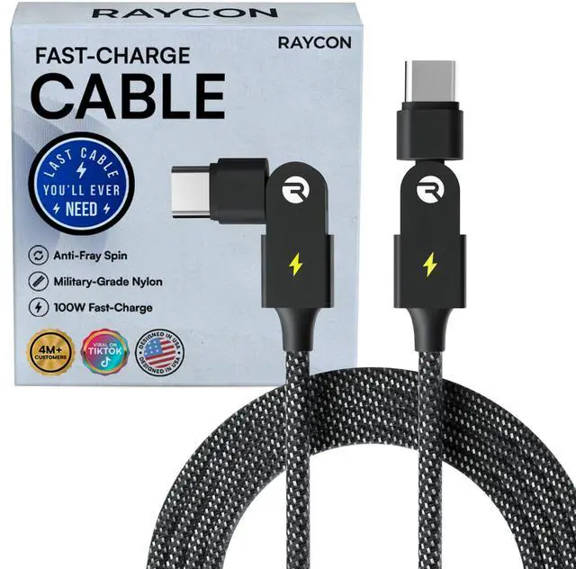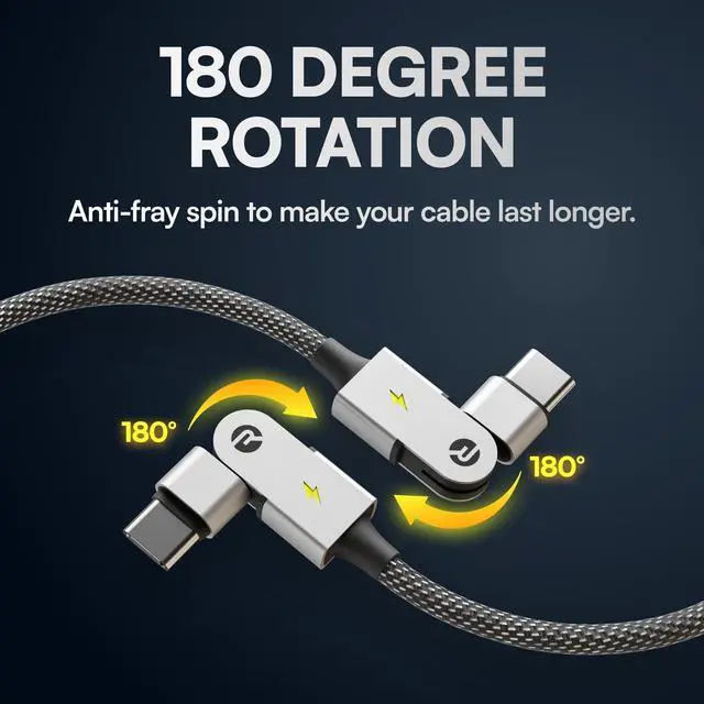 360 Rotating Swivel Ends The No-Fray Charger Cord Type C Double 180 rotating connectors on this usb c charging cable spin freely to prevent twisting, fraying, and knotting at the stress points where most c type charger cords fail; ideal as an everyday phone charger cord and gaming cable