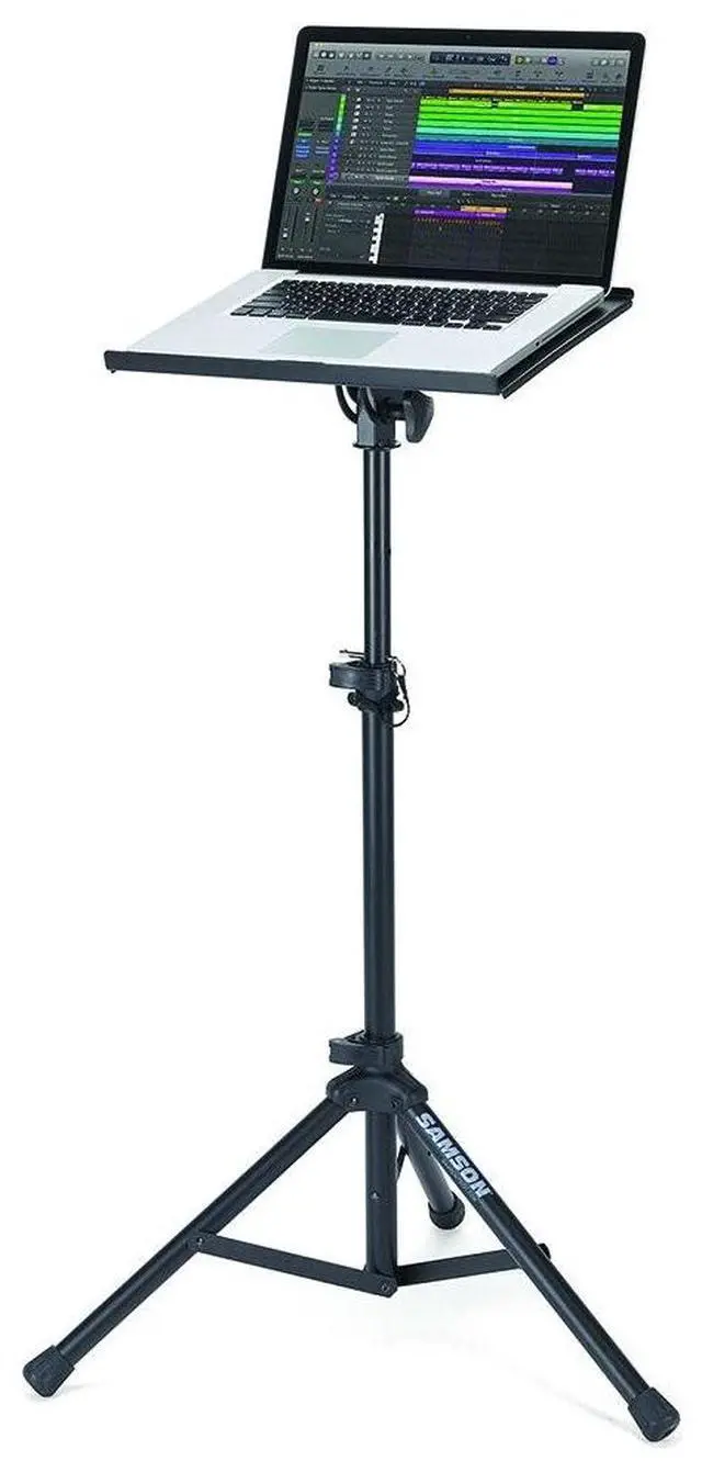 Samsons LTS50 Laptop Stand allows you to position your laptop exactly where you need it in any live or studio setting. A foldable tripod base provides both stability and portability, while the removable 15" x 11" laptop tray features angle-adjustment and a silicone layer to prevent slipping, all to make sure your laptop stays where you need it to. The adjustable height from 30" to 47 combined with steel construction, locking latches, and a pin-lock for increased support make the LTS50 the perfect perch for any laptop in any environment.