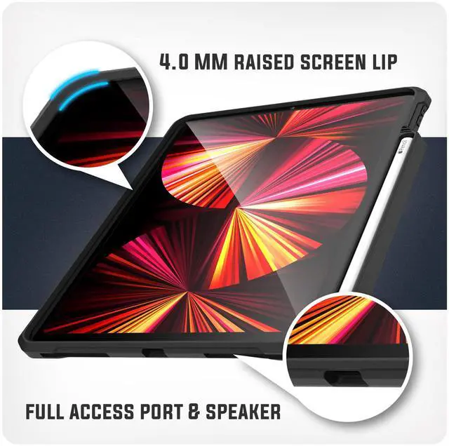 Encased Falcon-Armor for iPad PRO 11 Inch Case, Ultra Protective Cover with Charging Pencil Slot, Black (2020, 2021, 2022 / 2nd 3rd Gen)